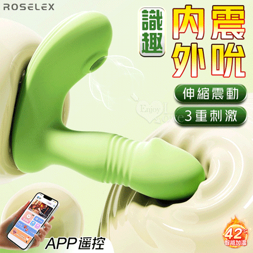 ROSELEX 勞樂斯 ‧ 識趣 10變頻伸縮+震動/吮吸內外齊歡智能加溫按摩器 - 可手機APP遙控﹝具兩種操控模式﹞綠色