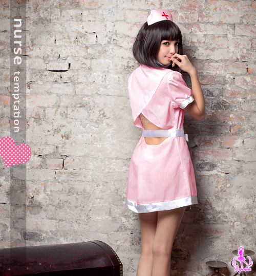 粉紅小露背三件式護士角色扮演服