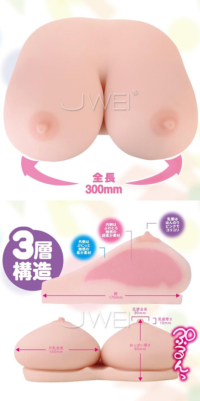 お椀型をした理想的な女の子のおっぱいを再現したおっぱいグッズ。内部のふわとろ素材を外部のソフト素材で包み込み、乳首はほんのりピンク色のコリコリ素材が使われている。可愛いJrブラと200mlローションが付属する。