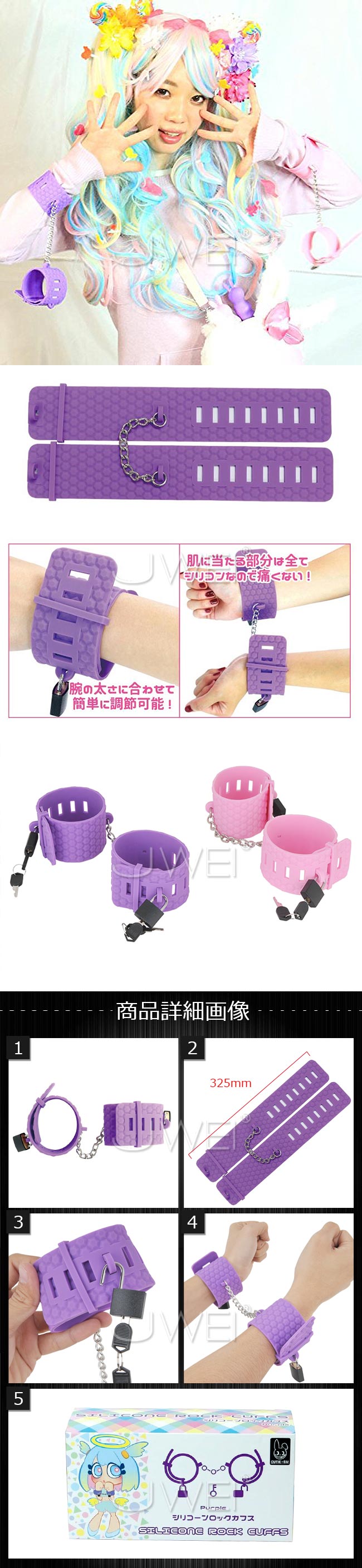 ►您現在的位置:首頁>日本原裝進口EXE.SILIONE ROCK CUFFS 安全矽膠可調節SM上鎖手銬-紫色/粉色