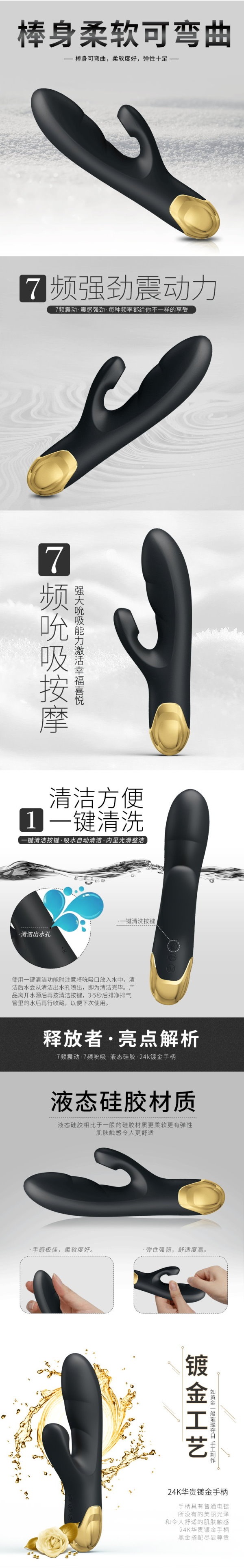 派蒂菈‧釋放者Ⅱ﹝24k鍍金手柄+7頻吸吮+7頻強震+液態硅膠+防水+充電﹞