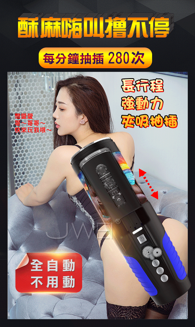 全自動抽插伸縮不用動,高潮不再只是想像!10頻5速伸縮全力抽插一吸一放,澎湃高潮狂襲而來。上下左右高速爆抽喚醒您沉睡的大鵰~採用模擬肌膚的材質4D逼真通道,柔軟超彈刺激您每一寸肌膚。10種互動發聲叫床,讓您選擇今晚要插哪一個!握把設計防滑矽膠再快也不擔心脫落,玩您想玩的速度。採用USB磁吸充電,一次充電讓您徹夜未眠方便快捷。