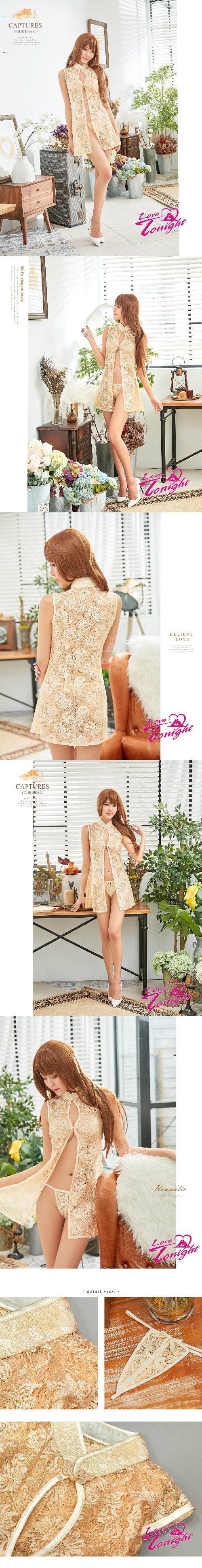 內容:開襟式旗袍睡衣x1+前開襠丁字褲*1