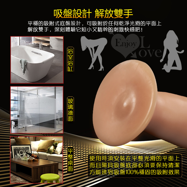 說明: 迷你造型逼真,虛擬膚質觸感如同真人皮膚,細膩柔滑。粉紅龜頭特別引人暇想,又莖體青筋爆起,更顯真實。 完全模擬男性陽具設計,老二龜頭、冠狀溝、彈性十足細膩柔軟。 短小精幹的它,最適合陰道口和後庭易受刺激而達到高潮的女性使用。 ※ 規格:總長度12.3公分,直徑約3.3公分。 ※ 材質:虛擬膚質材質與真人幾無差別,細膩柔滑,讓情慾進入一個全新的領域。 ※ 顏色:膚色款。 ※ 包裝:紙盒裝,有多款包裝盒,恕隨機出貨。