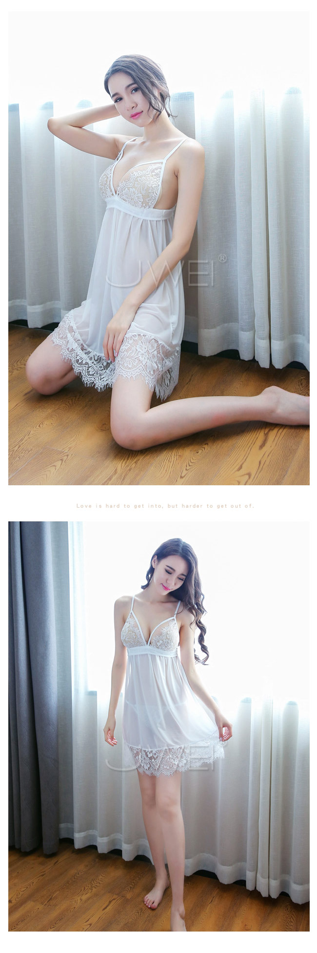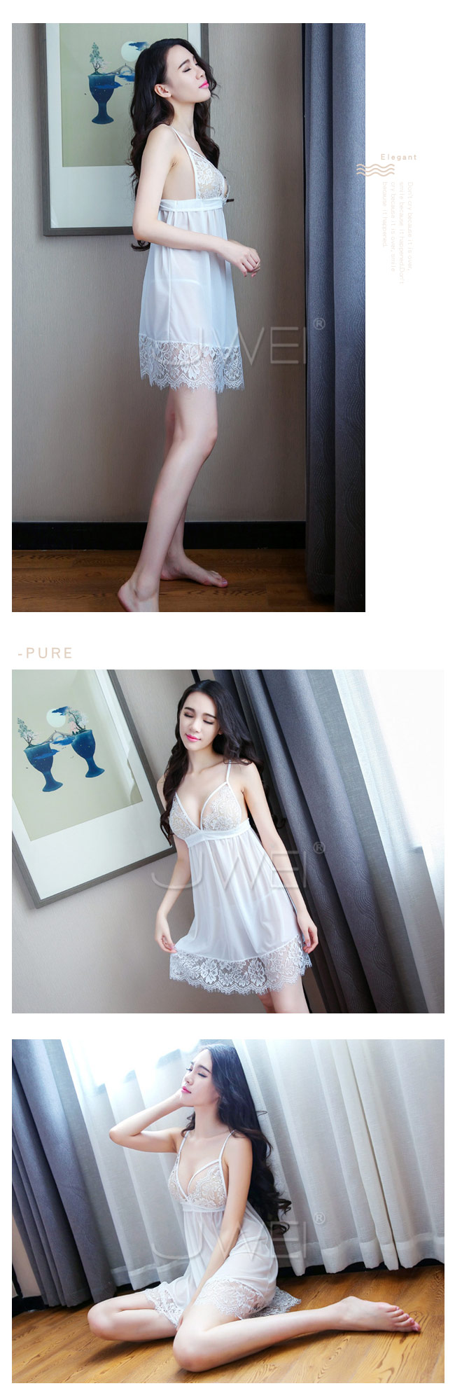 ◇◆青澀女姬.睫毛蕾絲裸感透紗性感吊帶睡衣(白色)◆◇