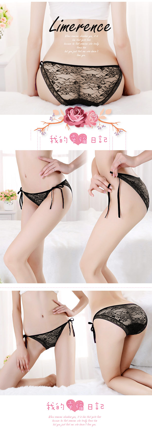 ◇◆迷情紫煙.綁帶蕾絲花紋透視內褲(黑)◆◇