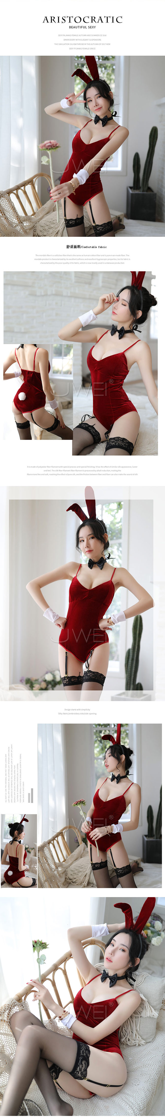 ◇◆萌萌軟兔.金絲絨兔女郎套裝五件組(紅)◆◇