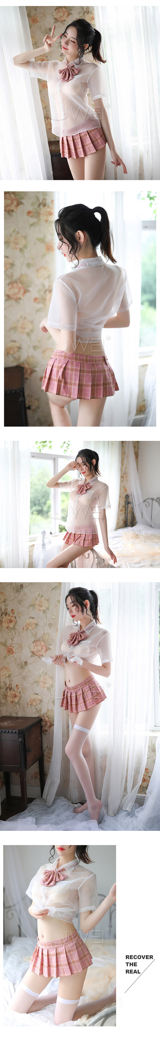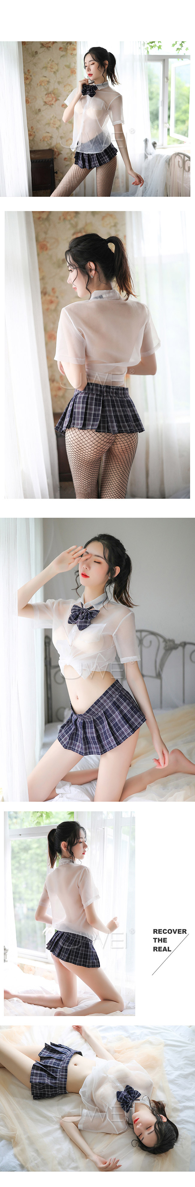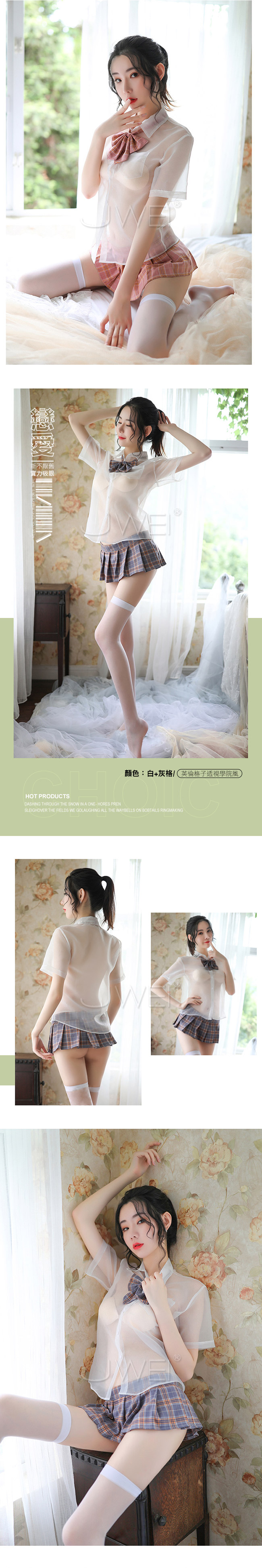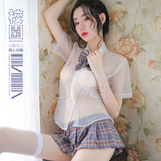 ►您現在的位置:首頁>學生角色扮演服!透視襯衫格子百褶裙四件式套裝﹝灰格﹞