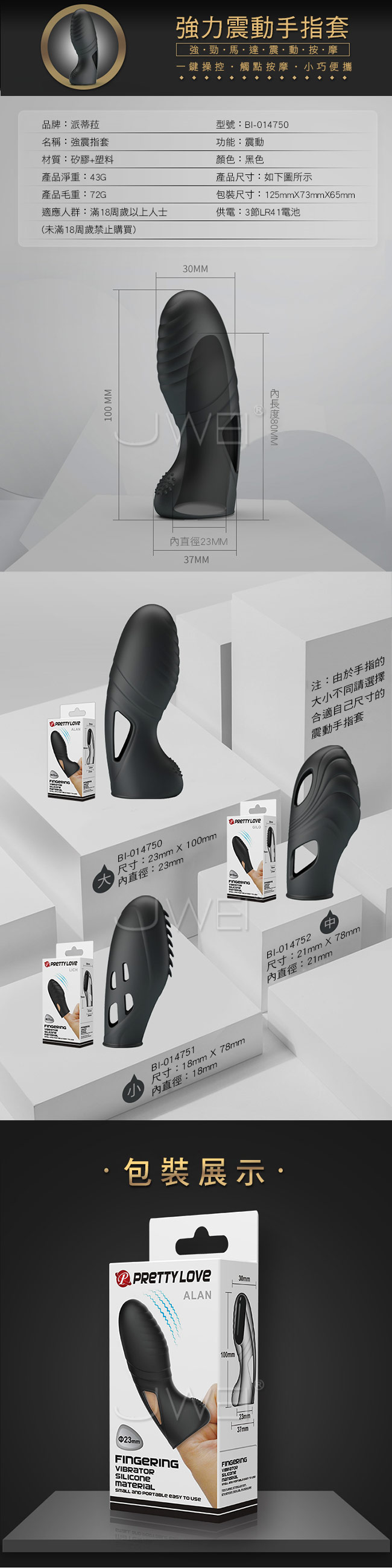 ►您現在的位置:首頁>Pretty Love.ALAN 多點按摩強力震動指套-I