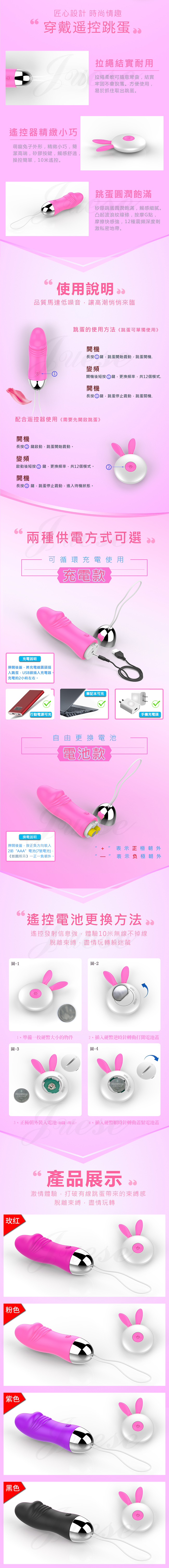 萌兔小嘰霸 12段變頻萌寵柔軟矽膠充電遙控跳蛋-紫色/玫紅