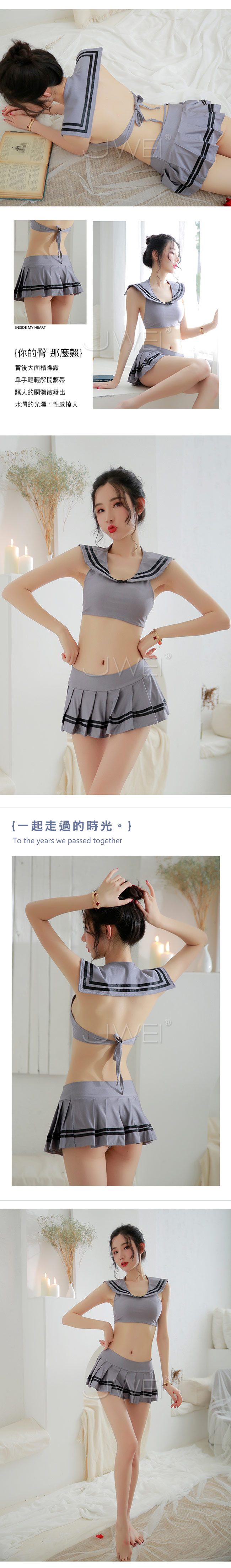 ◇◆熱戀禁區.性感露背綁帶分體式學生制服2件組◆◇