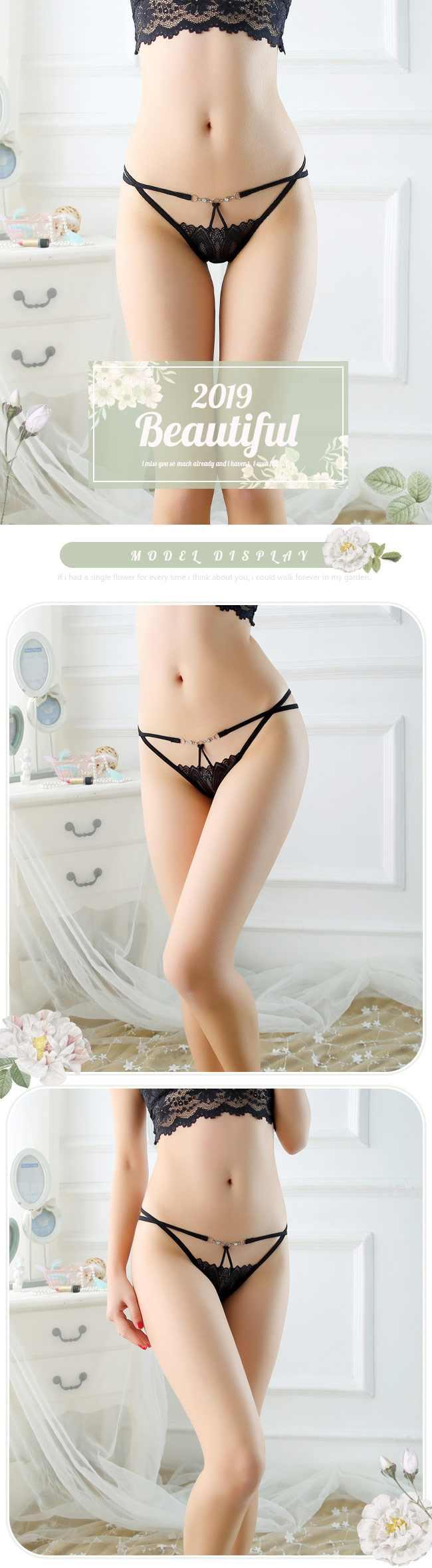 | 時尚女伶.蕾絲繡花鏤空透視低腰丁字褲(黑)