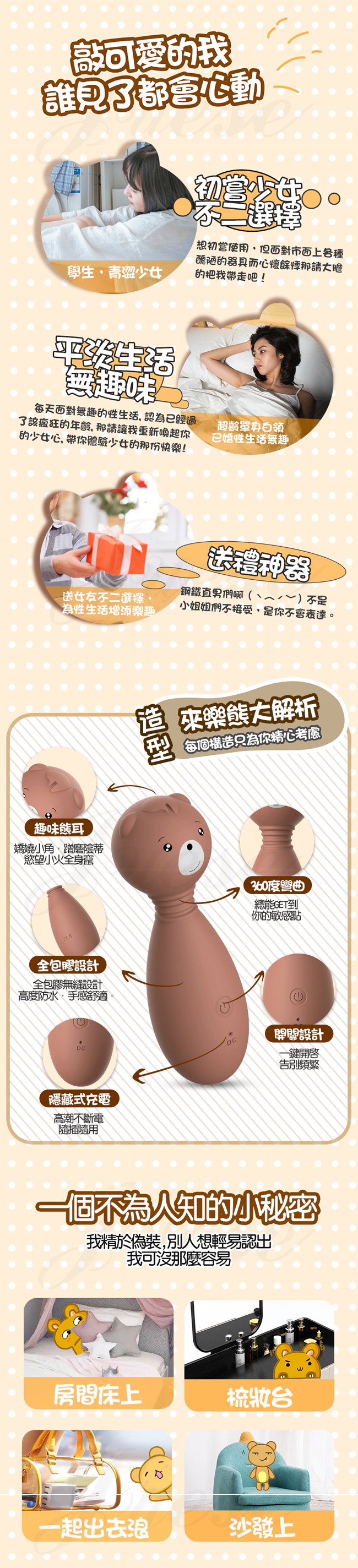 LILO 來樂 ‧萌熊來襲 12段變頻震動柔軟材質矽膠按摩棒