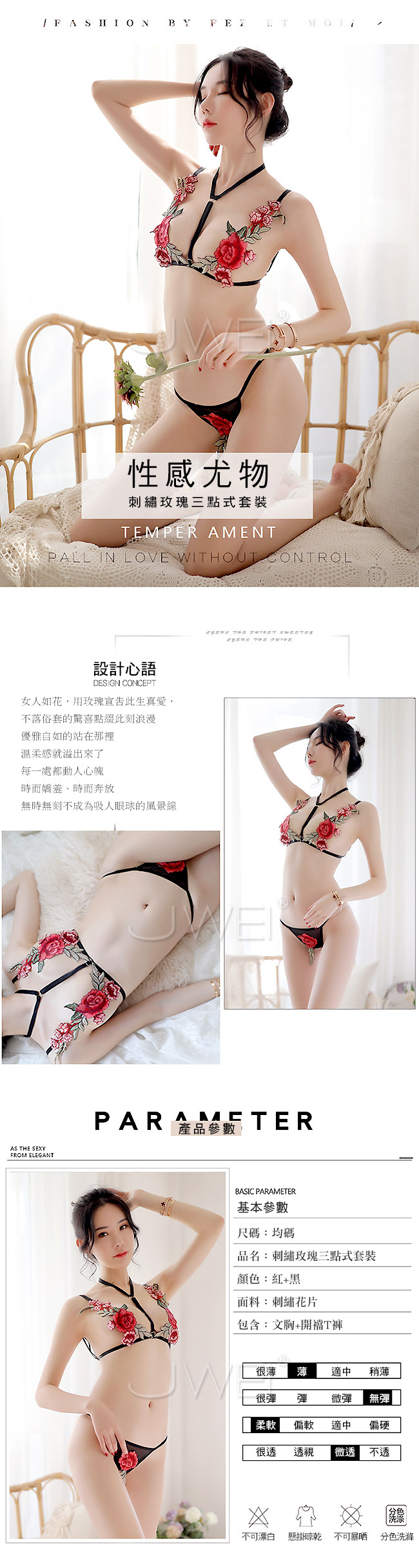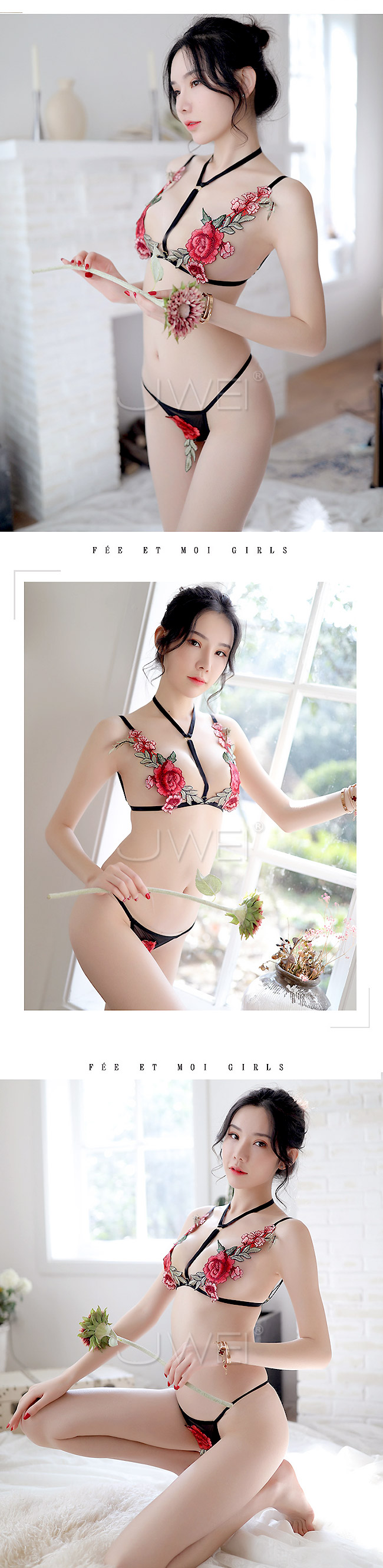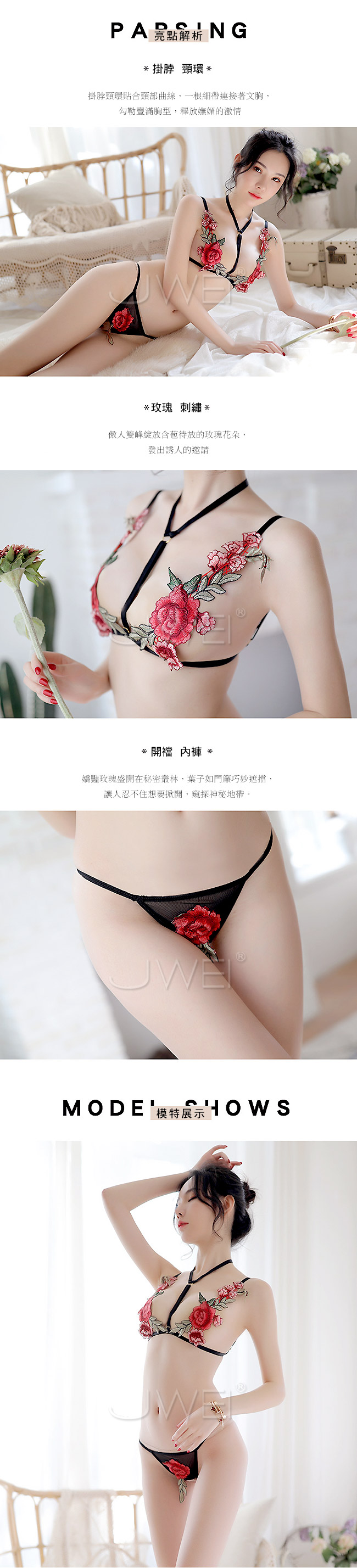 傲人雙峰綻放含苞待放的玫瑰刺繡,發出誘人的邀請,