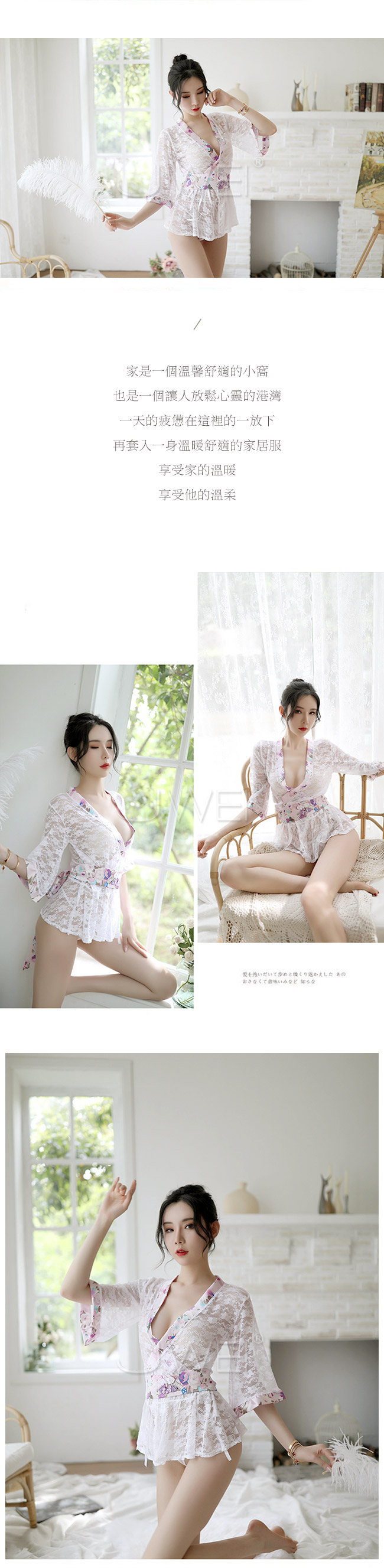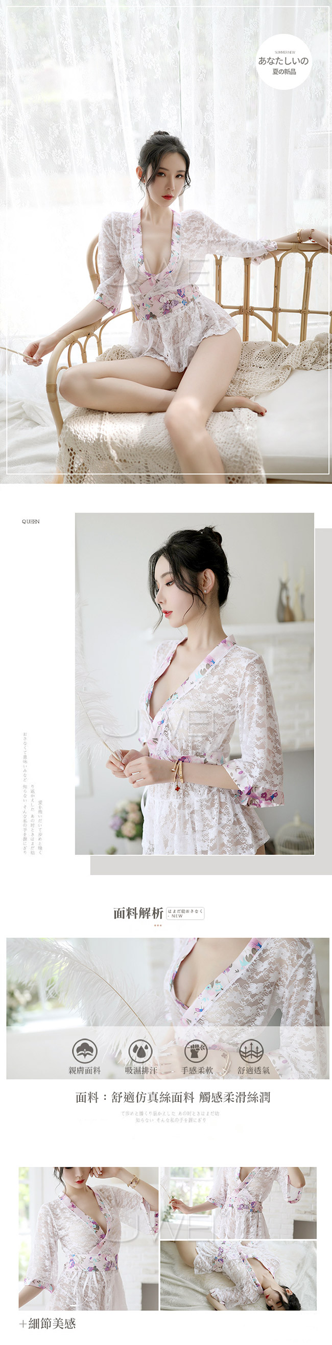 ◇◆日式清新.蕾絲透視印花和服三件組◆◇