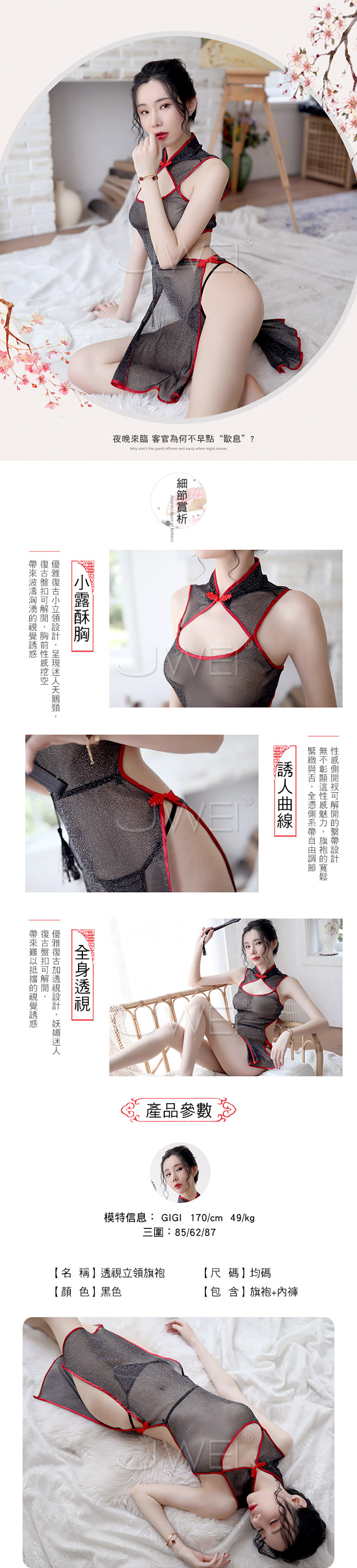 優雅透視設計,妖媚迷人,帶來難以抵擋的視覺誘惑。