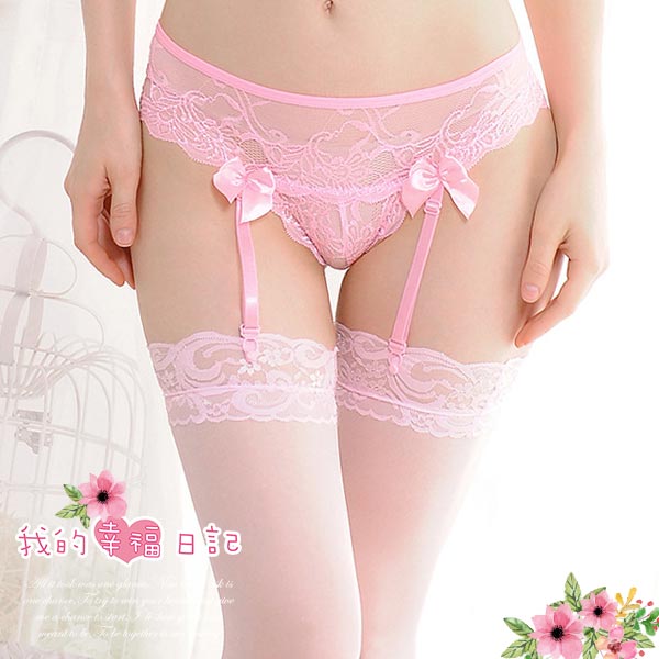 ◇◆迷夢之情.蕾絲綁帶深V連身吊襪帶三件組◆◇