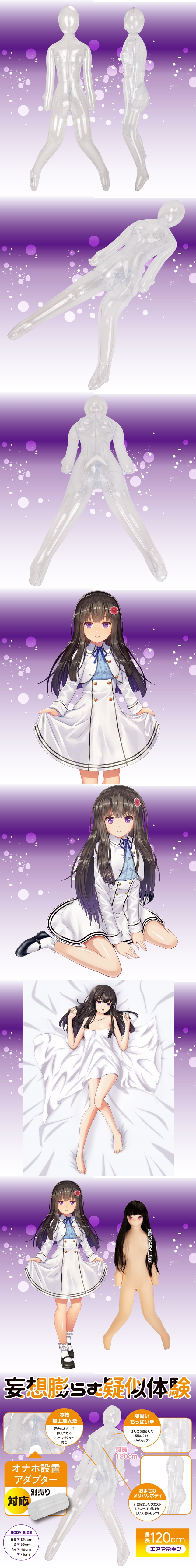 《同級生 蒼空ふうか》 120cmサイズのエアマネキン・・・根強い人気の【宇佐羽えあ】に待望の続編登場! 「えあのお友達なの・・・」 おしとやかな【蒼空ふうか】ちゃんは添い寝タイプの透明嫁。 別売りの【えあ★うぃっぐ】【えあ★ますく】【えあ★たいつ】を装着することで、よりリアルなあなた好みの【嫁】に育てて下さい。 バスト65cm ウエスト46cm ヒップ71cm 身長120cm オナホポケット装備(別売りオナホ設置アダプター対応) ※えあシリーズの【えあ★うぃっぐ】【えあ★ますく】【えあ★まん】【オナホ設置アダプター】が共通で装着出来ます。