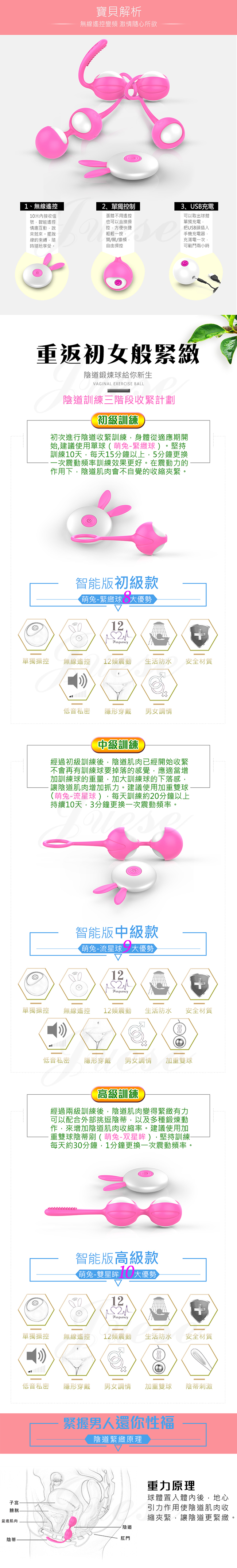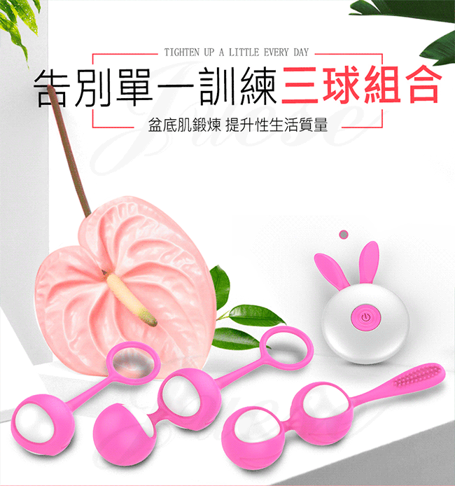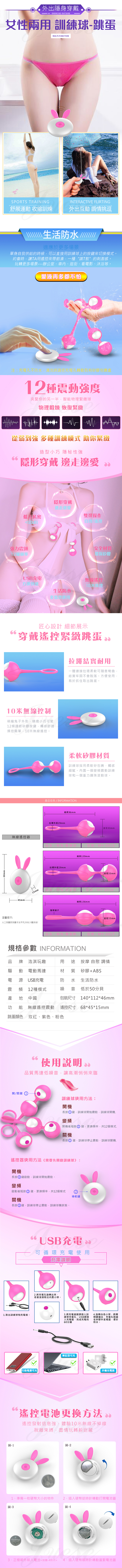 | 萌兔雙星眸 12段變頻矽膠充電遙控震動縮陰球-雙球-玫紅