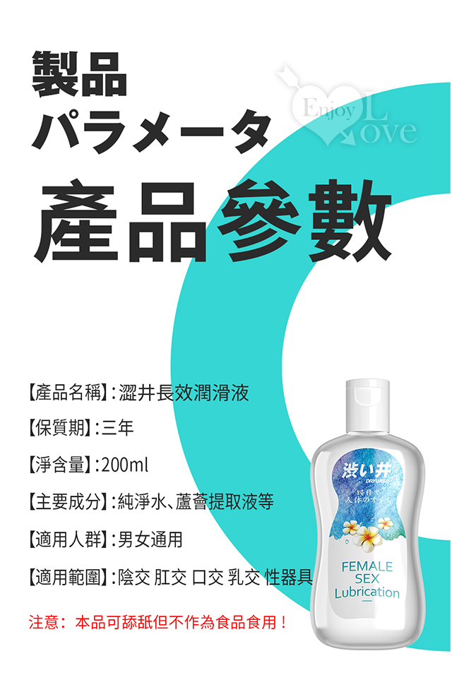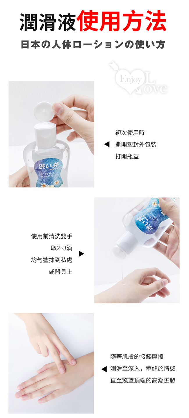 【用法及用量】愛愛前戲前,擠出液體塗於陰道、後庭、男性陰莖或用品器具上,可根據自身情況調整用量,完全適合用於保險套。
