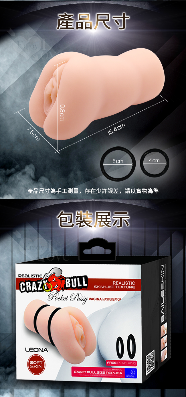 狂牛【CARZY BULL】利昂 雙環緊鎖立體飽滿3D通道自慰器