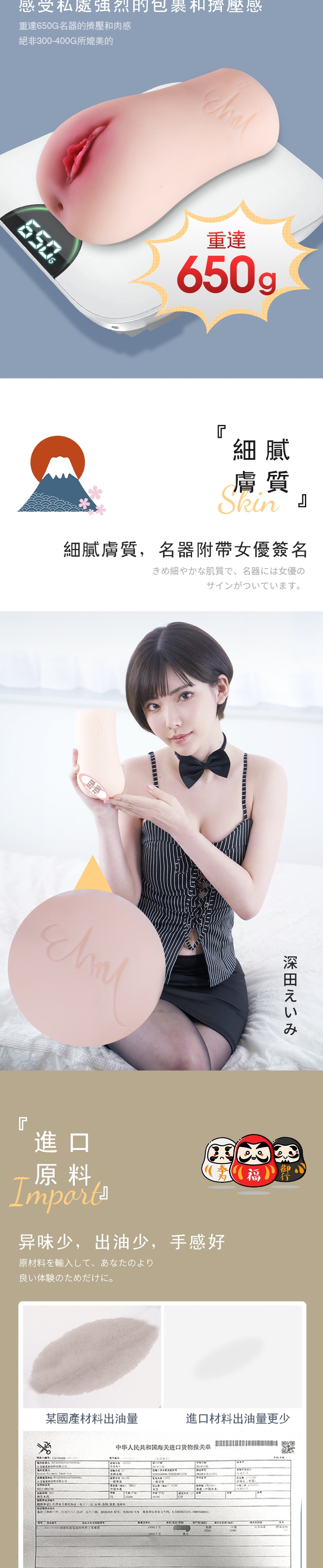 ║吸啜震動版║日本JNPG名器証明No.012深田詠美 10X電動+10X吸力型~深田えいみ 完全再現陰部名器