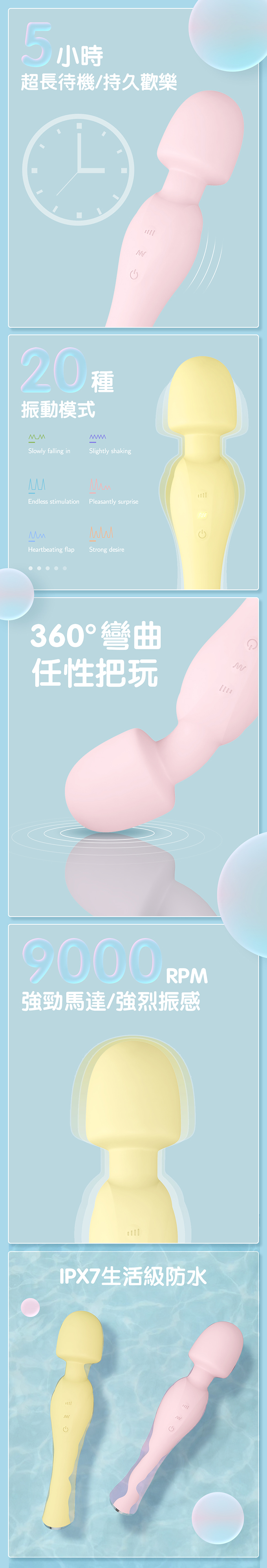 首頁>日本Drywell 涉い井.小蠻腰360度彎曲8x20頻AV棒-粉色 / 黃色