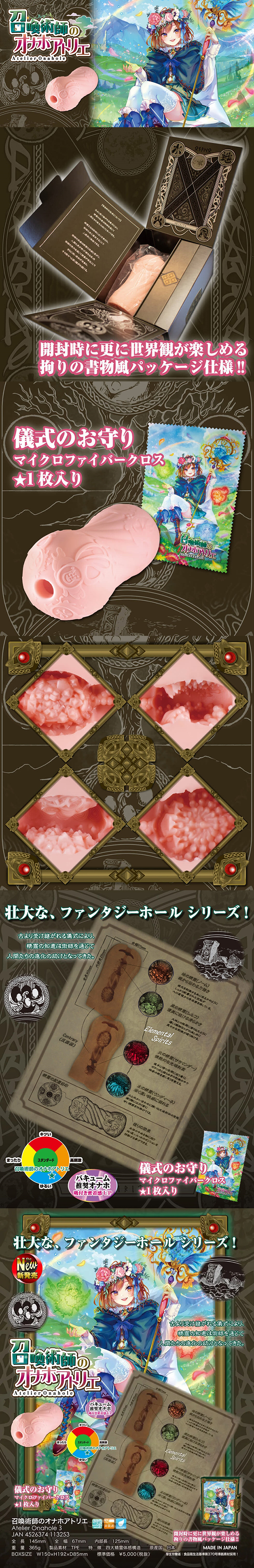 在你的陰莖上施法術,Toys Heart - 召喚術師之穴 (召喚術師のオナホアトリエ), 四大精靈體感構造,小穴入口位置刻有地風火水,讓你知道精靈的位置,以地和風加上火和水組成,地精靈如同岩山般不規則的肉柱組成。