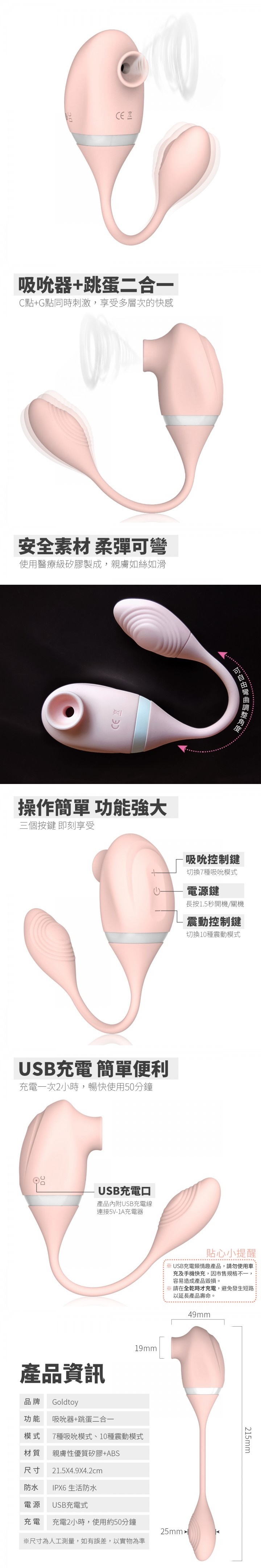 | Goldtoy - 吸吮器跳蛋二合一 G點+陰蒂同時刺激 7X10頻吸允振動 氣流式震動靜音按摩器