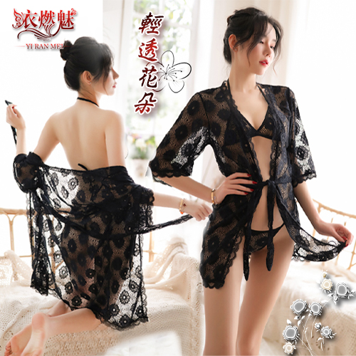 | 冷豔佳人.深V透視蕾絲睡衣三件組