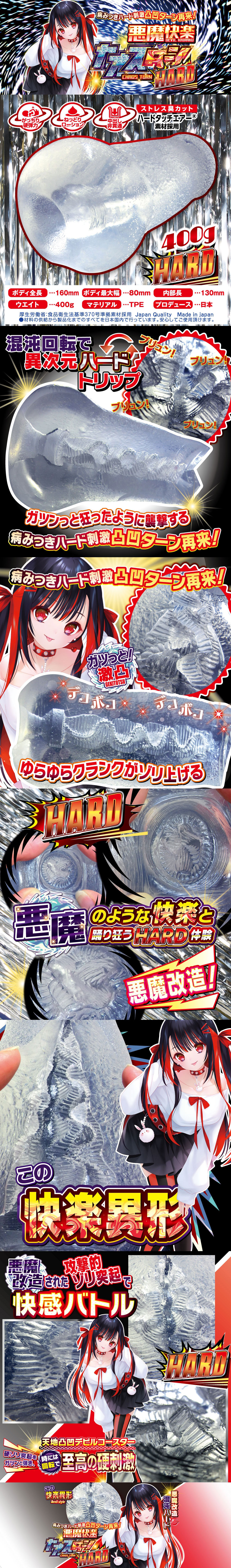 種類:非貫通 材質:矽膠 包裝:紙盒包裝 產地:日本製 商品尺寸:全長16cm、內部長13cm、寬8cm、重量400g 盒子尺寸:長20.5cm、寬13.5cm、高7.5cm 附贈:隨身包潤滑液1包 混沌迴轉覺醒構造硬版進化! 天地凹凸的波浪縐褶與迴轉帶給你至高的刺激 高刺激的突起舔弄加上高存在感的搔刮觸感,輪迴的多重感受讓你沉淪在這惡魔級的蜜穴裡