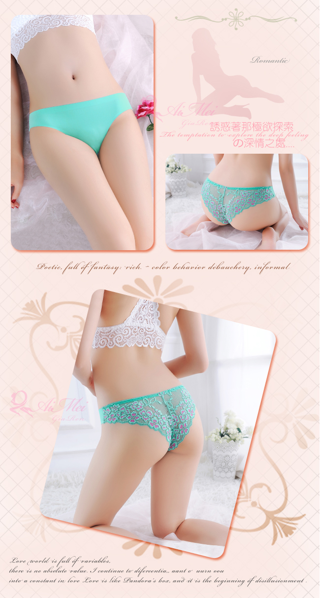 ►您現在的位置:首頁>寵愛迷戀!無痕蕾絲花瓣拼接冰絲三角褲﹝綠﹞