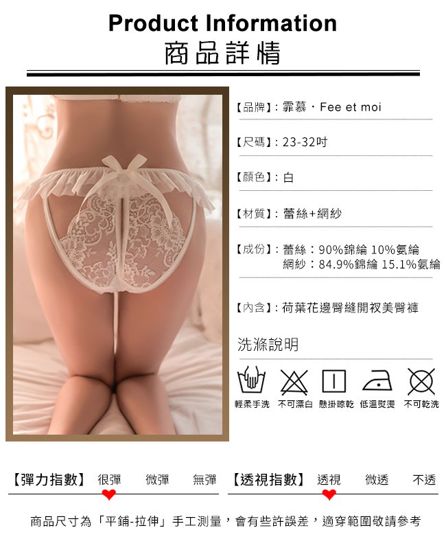 荷葉花邊臀縫開衩設計美臀低腰褲﹝白﹞