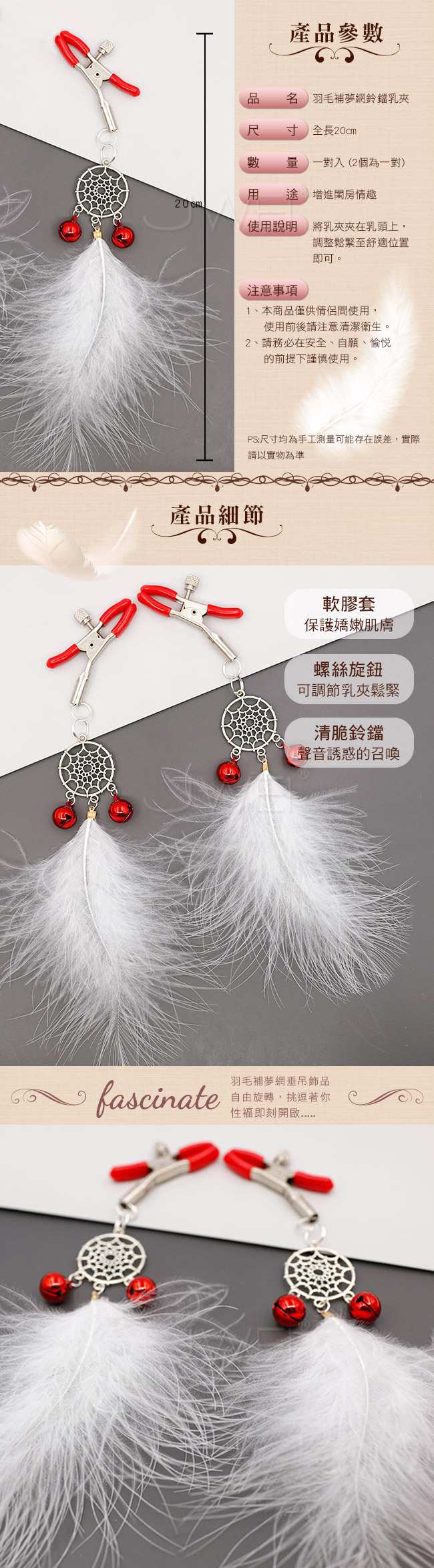 羽毛補夢網垂吊飾品 自由旋轉,挑逗著你 難以掩蓋的火辣 讓人離不開雙眼 性褔即刻開啟.....