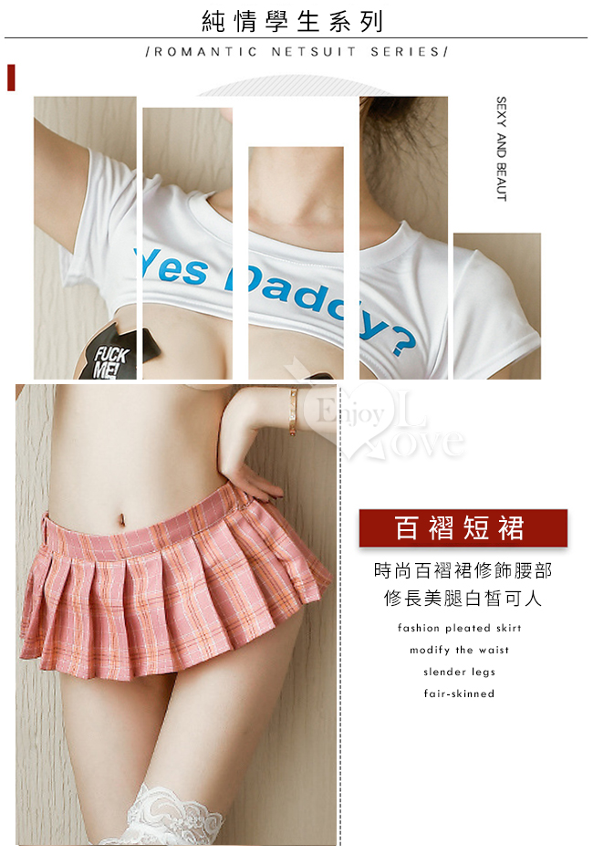 ※ 商品內容:短上衣+百褶魔鬼氈短裙+絲襪。(不含乳貼)