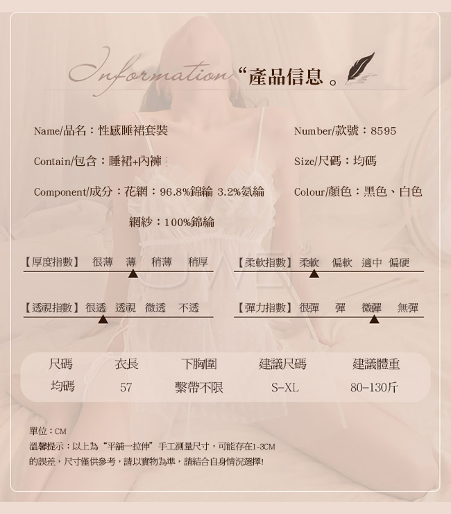 ■內容物:睡裙x1、T褲x1