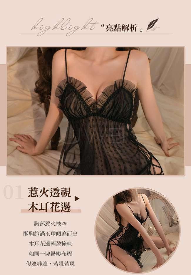 ◇◆邂逅浪漫.木耳花邊性感開衩透視睡裙2件組(白色)◆◇