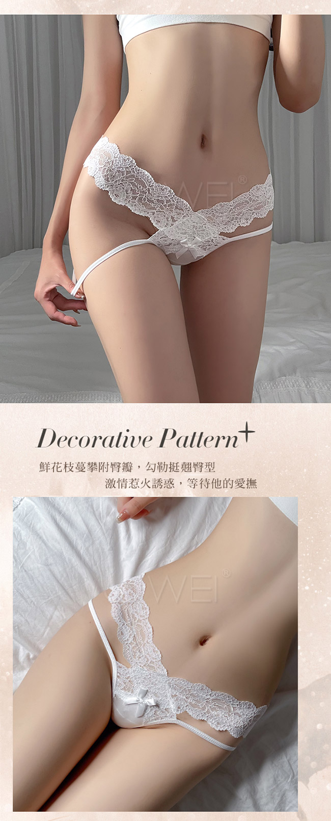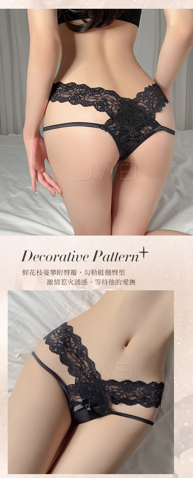 豐腴美臀映上蕾絲花蔓,