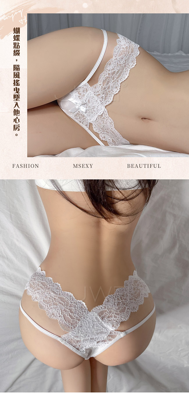 嬌俏蝴蝶佇立在柔軟薄透蕾絲上,