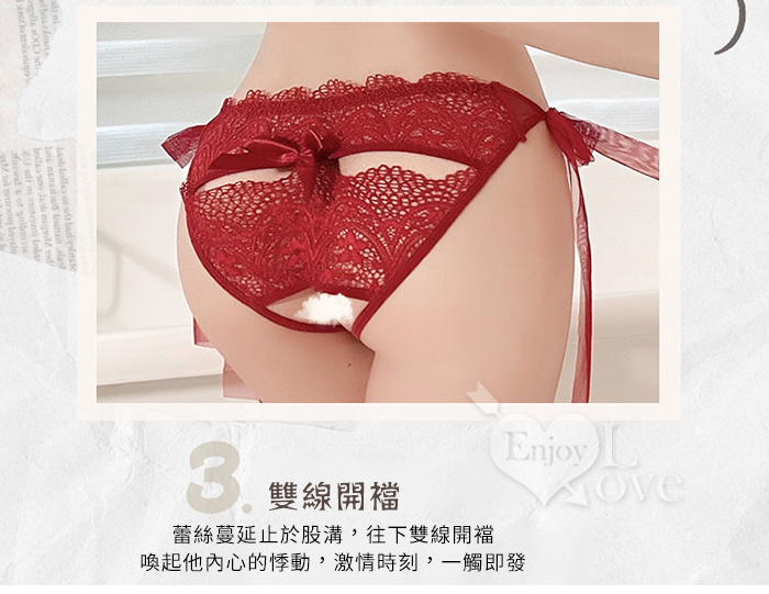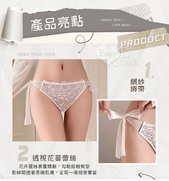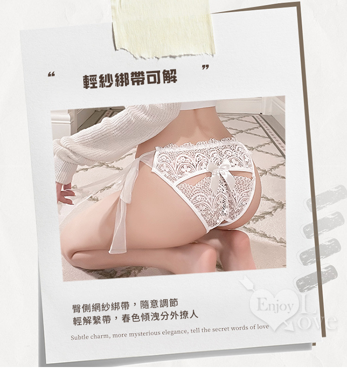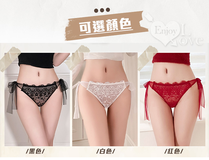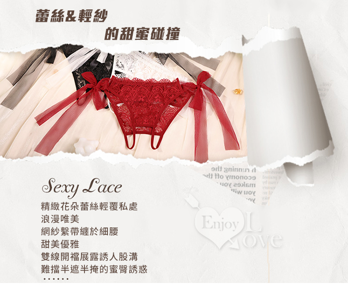 網紗側綁帶透視花蔓蕾絲心機開襠褲﹝黑﹞
