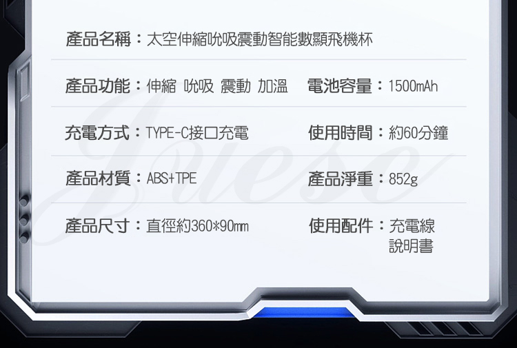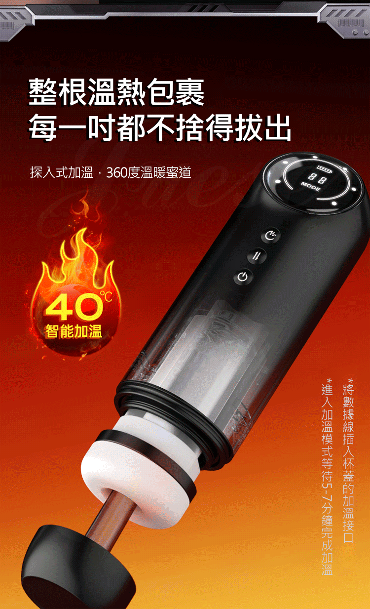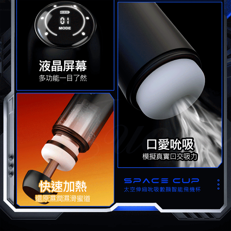| 太空杯 4頻伸縮+4頻吮吸一鍵爆發屏顯加溫USB充電電動自慰杯