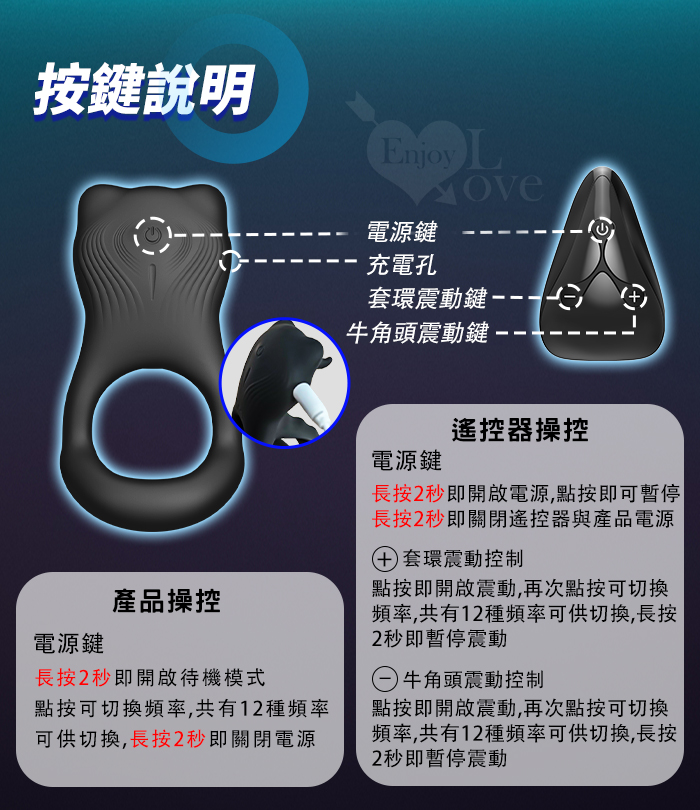 ►您現在的位置:首頁>YEAIN夜樱 ‧ 牛魔王 男女同歡按摩震動套環﹝無線遙控/12頻強震/雙環固蛋/聚焦蜜豆/USB充電﹞
