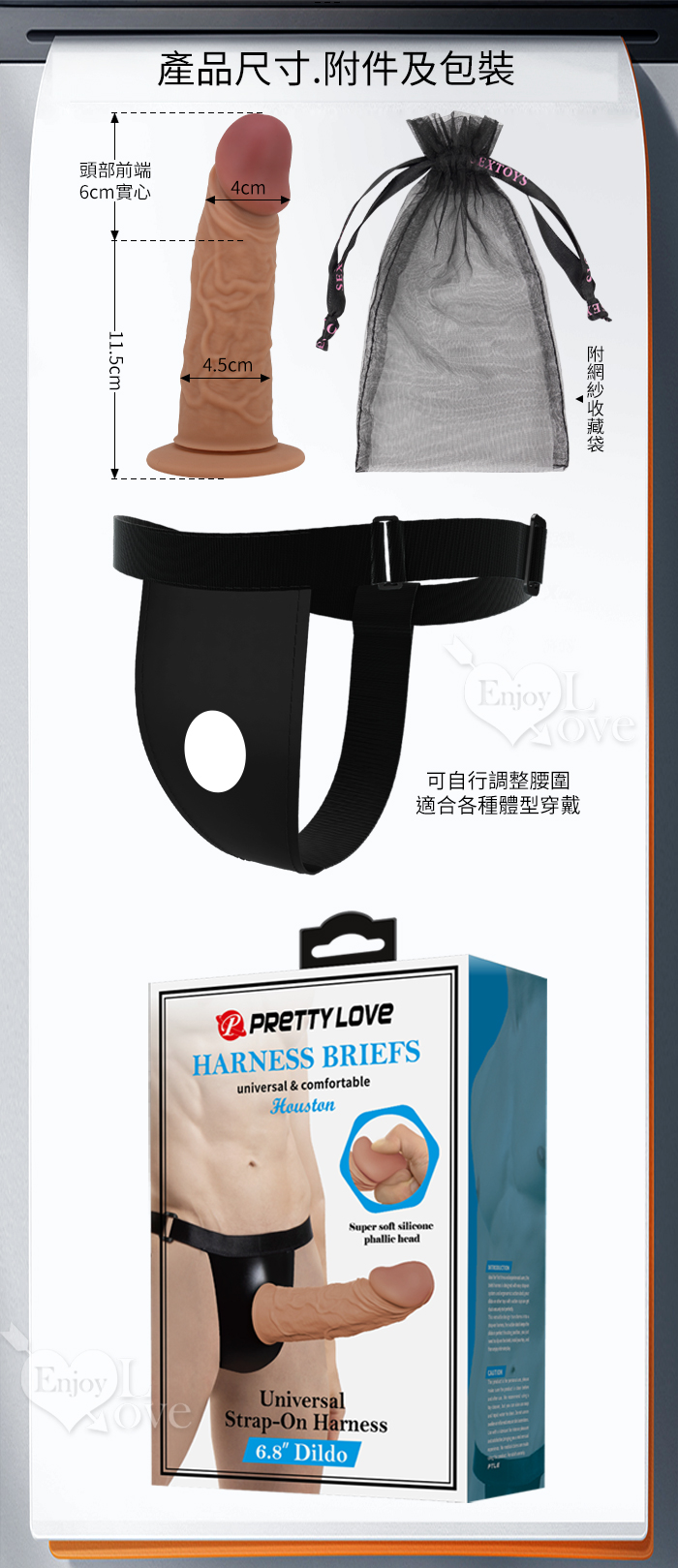 說明: 矽膠舒適肉感穿戴式大老二造型棒 (含穿戴褲-可分離)。 6.8吋長的陽具棒,前端頭部6公分實心設計,易於進入穴中。 穿戴在跨下,可隨身體自然韻律抽動,令對方進入高潮!雙雙墜入無盡美妙境界!。 並適合男性性功能障礙,替代陰莖短小、軟弱無力者使用。 因為它很粗大建議搭配潤滑液使用效果更佳。 ◎詳細規格◎ ‧ 材質:矽膠 (親膚舒適) ‧ 顏色及規格:詳如圖 ‧ 本款最大可穿至35吋腰圍 ‧ 此產品詳細樣式如圖所攝錄,敬請參閱選購