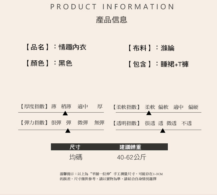 2.基於保障消費者個人衛生,情趣衣物類恕不接受退換貨,如為商品本身暇疵,接受三日內換貨,請勿試穿。