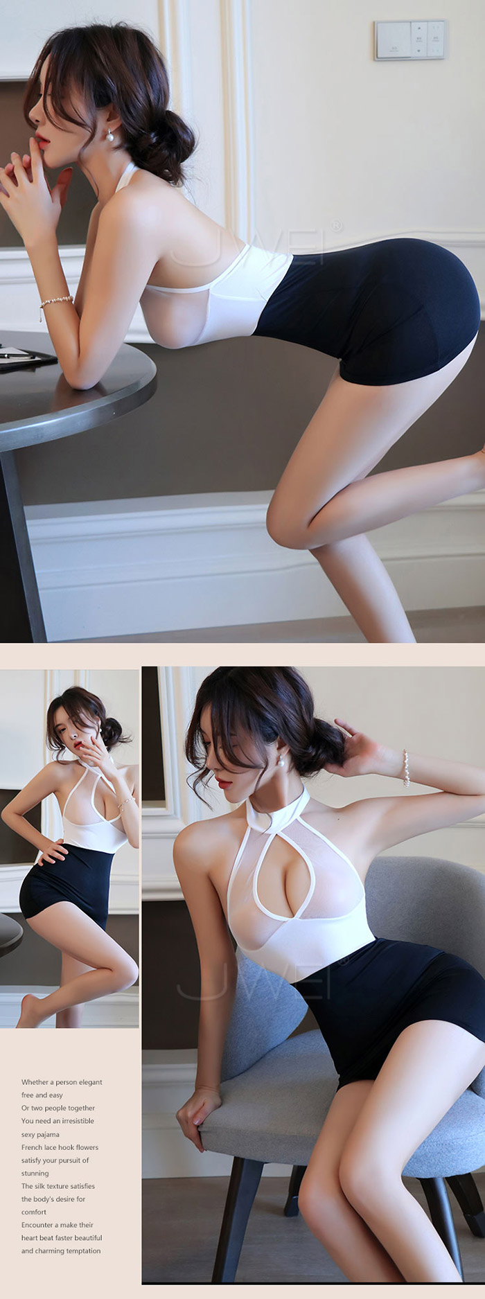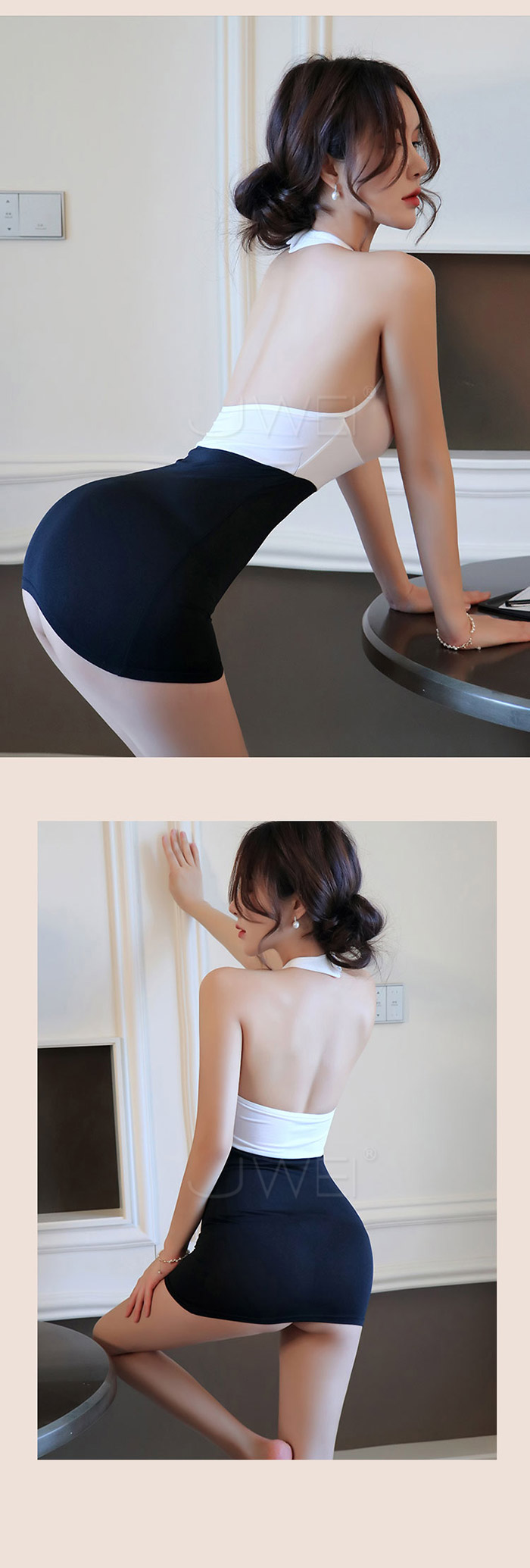 ►您現在的位置:首頁>極致戀人.柔媚掛脖透視薄紗水滴露胸包臀短裙OL套裝5件組(黑紅)