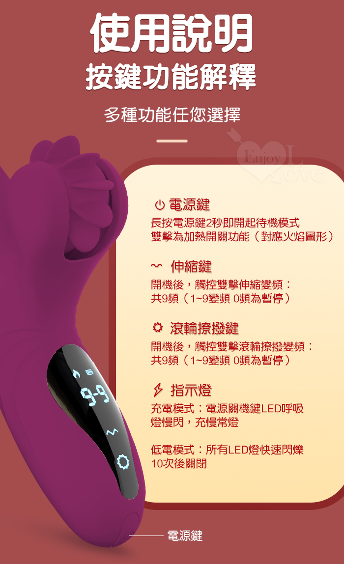 首頁>夜櫻YEAIN 風火輪9x9頻伸縮舌舔加溫震棒-紫
