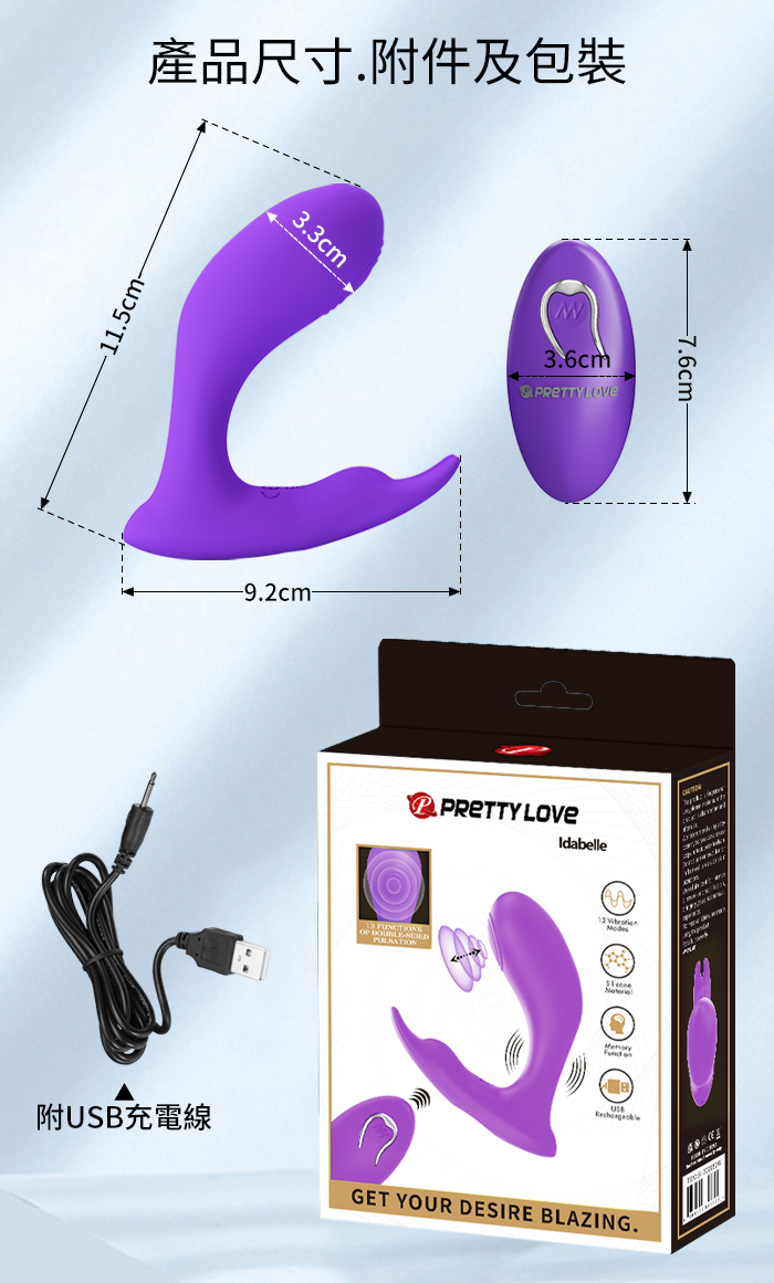 | 派蒂菈 ‧ Idabelle 伊達貝利 無線遙控 雙點鼓動震動前列腺按摩器﹝12頻鼓動+強震/男女可通用/USB充電﹞紫羅蘭