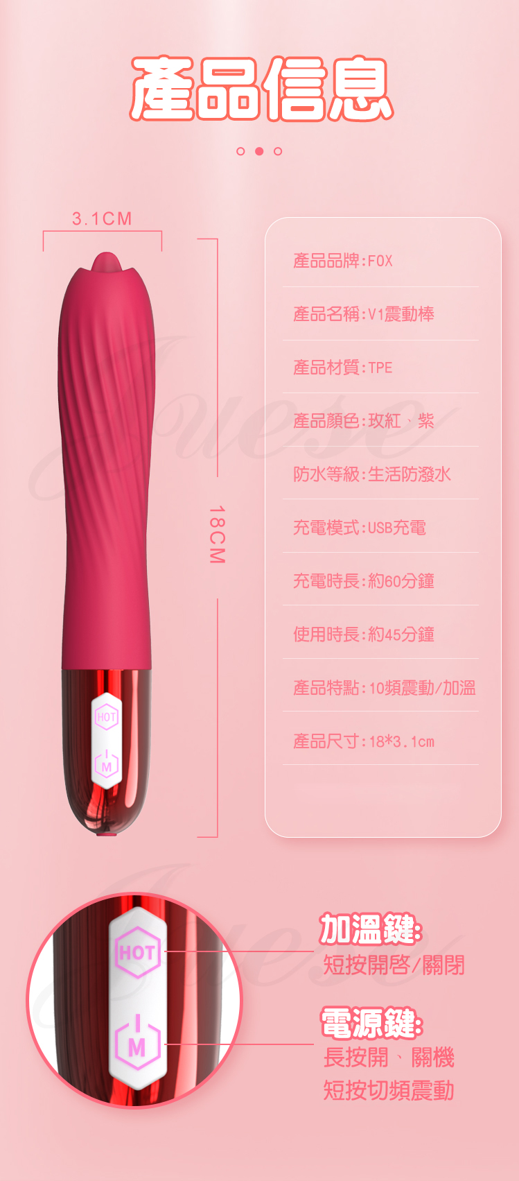 .規格:10段震動、加溫。