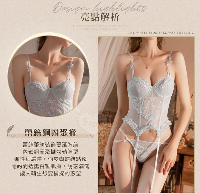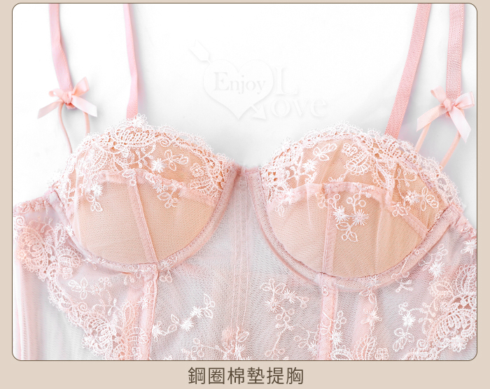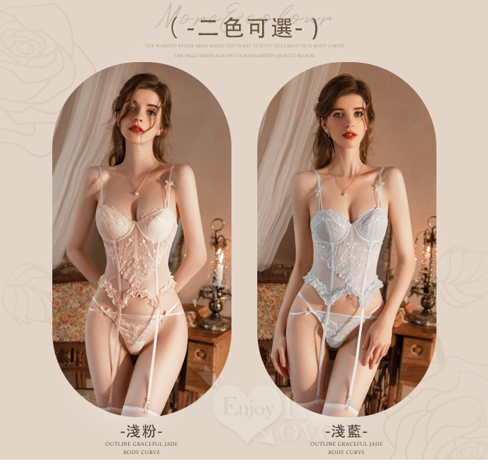 情趣馬甲!鋼圈聚攏魚骨束身蕾絲雙線小褲吊襪帶三件組﹝藍﹞