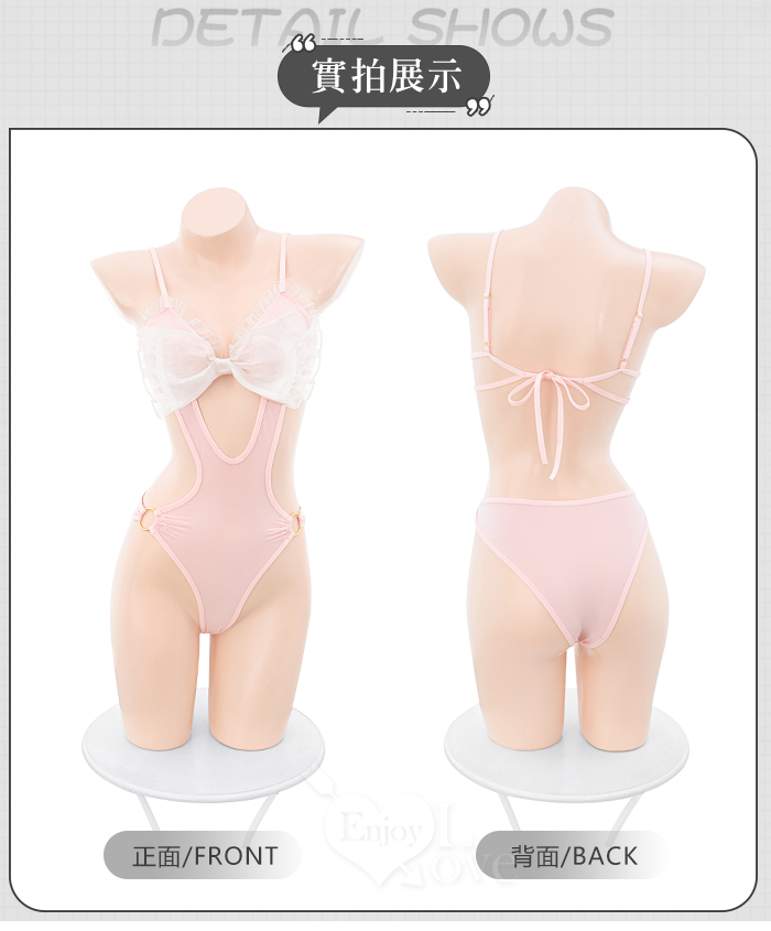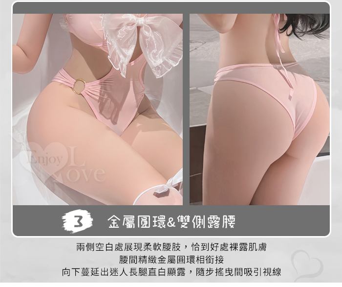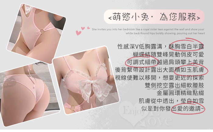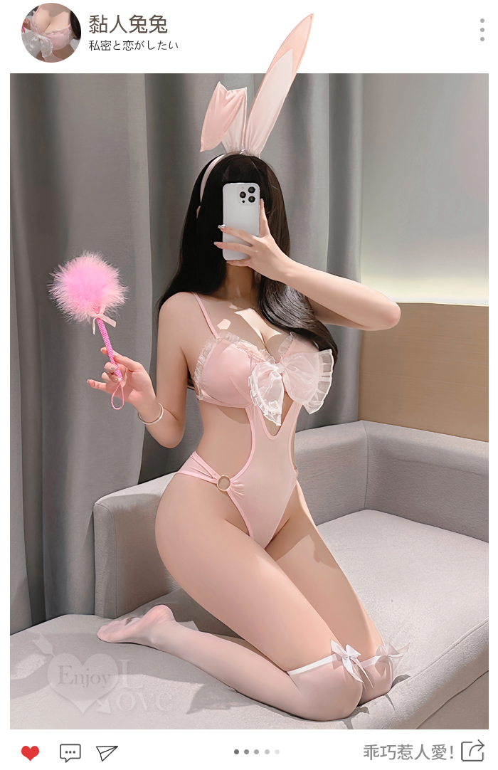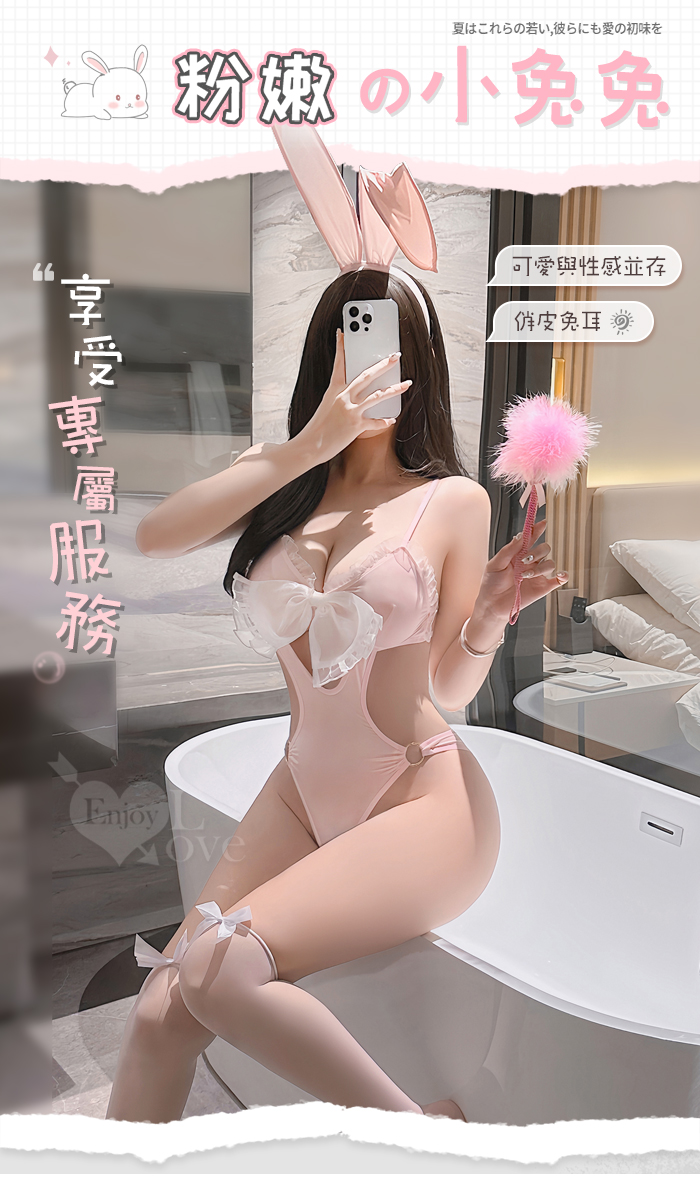 兔女郎角色扮演服!萌寵甜粉雪白酥胸圓環雙側露腰連身衣兩件組
